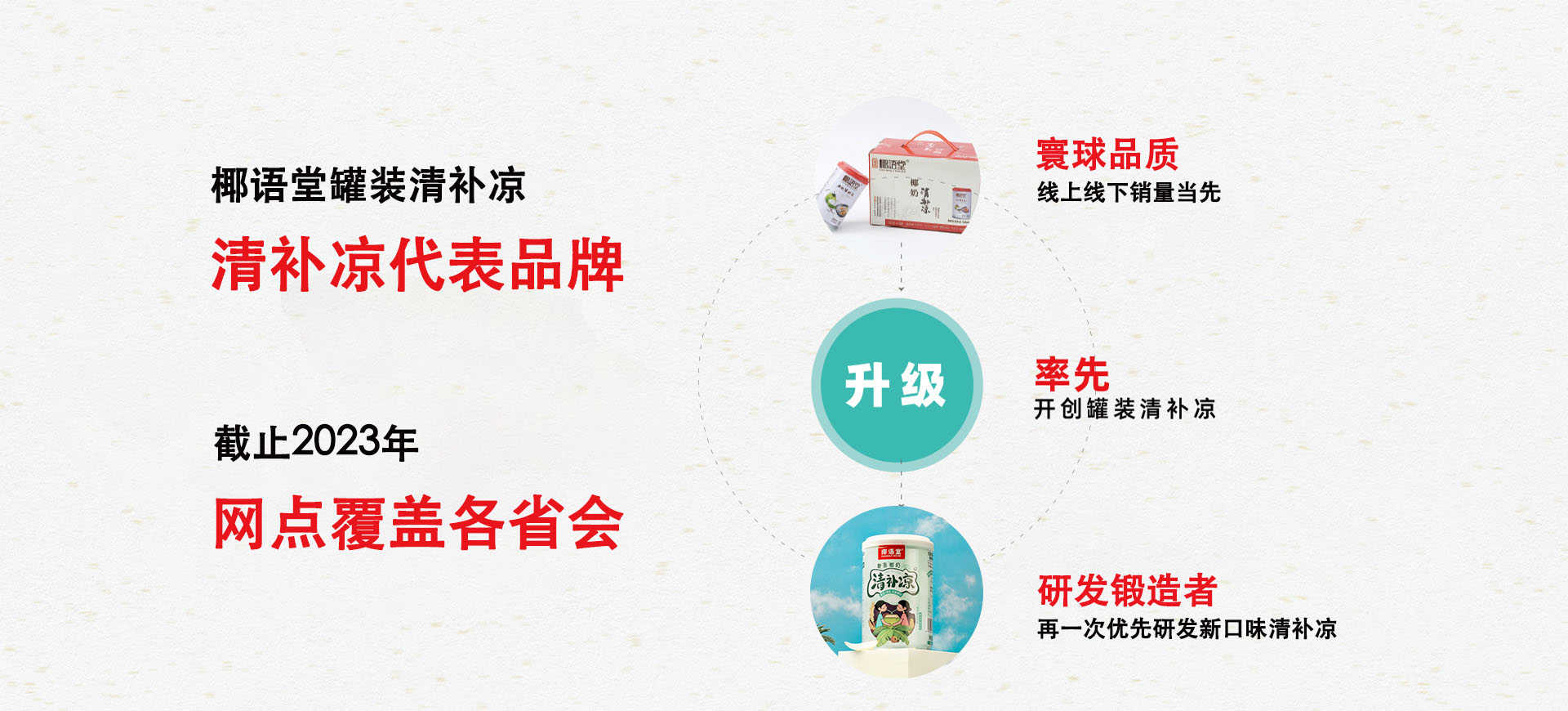 椰語堂公司介紹 椰語堂始創(chuàng)于2012年,是海南一家把海南清補(bǔ)涼為代表的特色小吃精致化、標(biāo)準(zhǔn)化并進(jìn)行連鎖發(fā)展的企業(yè),椰語堂專注于海南本土地域特色元素特別是椰子系列產(chǎn)品的深度研發(fā)。椰語堂被評(píng)為海南風(fēng)味小吃一級(jí)品牌名店,椰語堂多款小吃被評(píng)為海南名小吃、中國名小吃,并被選為中國地域十大名小吃代表品牌。椰語堂的全國門店分布在各高端商場(chǎng)、機(jī)場(chǎng)、郵輪、五星級(jí)酒店、動(dòng)車站、景區(qū)等。椰語堂清補(bǔ)涼被選為博鰲亞洲論壇專供產(chǎn)品、中國國際養(yǎng)生食品博覽會(huì)金獎(jiǎng)等殊榮,椰語堂清補(bǔ)涼在線下各連鎖賣場(chǎng)、盒馬鮮生、中石化易捷、中石油昆侖、全國30多家機(jī)場(chǎng)、五星、七星酒店等渠道銷售并成為政府及集團(tuán)采購產(chǎn)品。在電商線上渠道,椰語堂椰奶清補(bǔ)涼無論在銷量和好評(píng)方面是品類第一,是深受消費(fèi)者喜愛的高品質(zhì)產(chǎn)品。椰語堂是海南大學(xué)食品學(xué)院研究生實(shí)習(xí)基地,公司發(fā)揮椰語堂研究院優(yōu)勢(shì),擁有產(chǎn)品研發(fā)方面的多項(xiàng)專利。椰語堂因?yàn)槠鋬?yōu)秀品質(zhì)及良好顧客體驗(yàn),被中央電視臺(tái)、湖南衛(wèi)視、旅游衛(wèi)視等多家衛(wèi)視、人民日?qǐng)?bào)、中國縣域經(jīng)濟(jì)報(bào)、新浪、騰訊、SSBD等國內(nèi)外媒體報(bào)道宣揚(yáng)。椰語堂是海南文化的傳播和弘揚(yáng)者,是海南地標(biāo)美食品牌的優(yōu)秀代表和海南地域文化的一張亮麗名片,同時(shí),椰語堂也是中國連鎖經(jīng)營協(xié)會(huì)會(huì)員單位。 more |